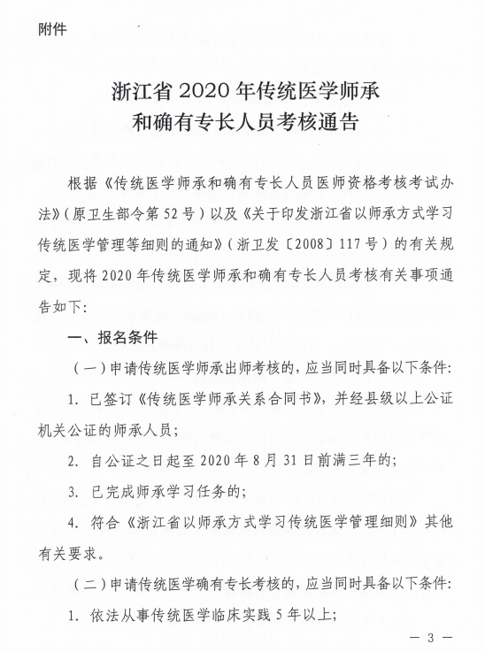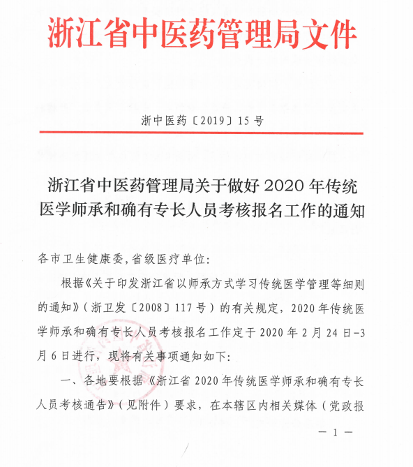 關(guān)于做好2020年傳統(tǒng)醫(yī)學(xué)師承和確有專長人員考核報(bào)名工作的通知