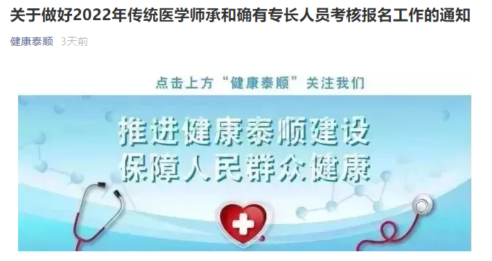浙江省溫州市泰順縣關(guān)于做好2022年傳統(tǒng)醫(yī)學師承和確有專長人員考核報名工作的通知