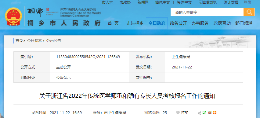 關(guān)于浙江省2022年傳統(tǒng)醫(yī)學(xué)師承和確有專長(zhǎng)人員考核報(bào)名工作的通知