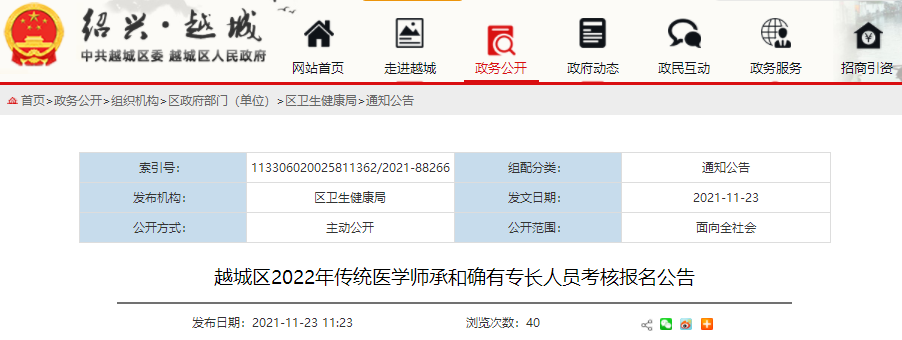 越城區(qū)2022年傳統(tǒng)醫(yī)學(xué)師承和確有專長人員考核報名公告