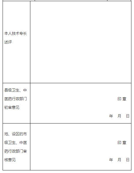 1.《傳統(tǒng)醫(yī)學(xué)醫(yī)術(shù)確有專長考核申請表》;