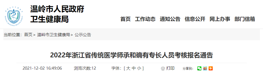 附件:浙江省中醫(yī)藥管理局關(guān)于做好2022年傳統(tǒng)醫(yī)學(xué)師承和確有專長(zhǎng)人員考核報(bào)名工作的通知(http://www.wl.gov.cn/art/2021/12/2/art_1402251_58979564.html)