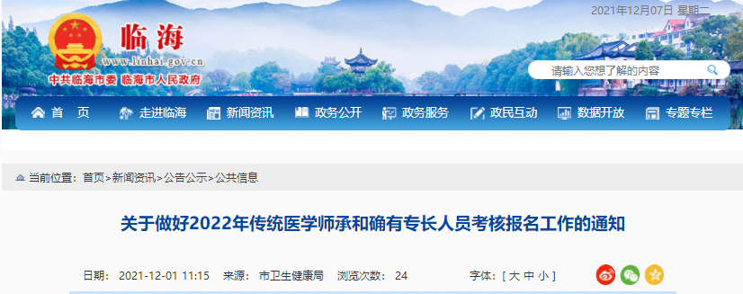 附件:浙江省中醫(yī)藥管理局關(guān)于做好2022年傳統(tǒng)醫(yī)學(xué)師承和確有專(zhuān)長(zhǎng)人員考核報(bào)名工作的通知(http://www.linhai.gov.cn/art/2021/12/1/art_1229396022_3758446.html)