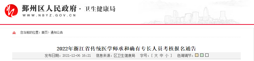 根據(jù)《浙江省中醫(yī)藥管理局關于做好2022年傳統(tǒng)醫(yī)學師承和確有專長人員考核報名工作的通知》(浙中醫(yī)藥〔2021〕20號)精神,請符合條件的人員在規(guī)定時間內(nèi)完成報名工作。具體見附件通知。