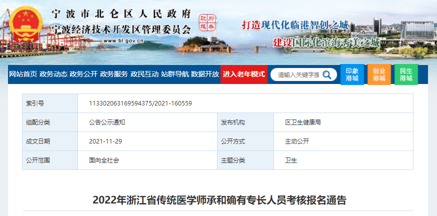 附件:浙江省中醫(yī)藥管理局關(guān)于做好2022年傳統(tǒng)醫(yī)學(xué)師承和確有專長人員考核報名工作的通知(http://www.bl.gov.cn/art/2021/11/29/art_1229055347_3846781.html)