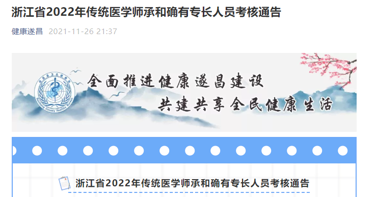 浙江省2022年傳統(tǒng)醫(yī)學(xué)師承和確有專長人員考核通告