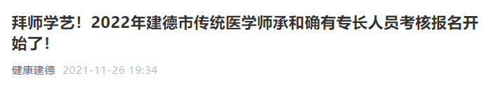 2022年建德市傳統(tǒng)醫(yī)學(xué)師承和確有專長人員考核報名開始