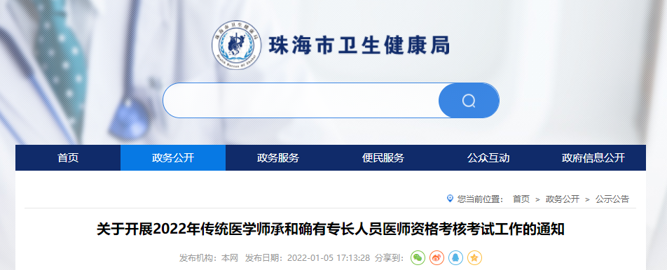廣東省珠海市衛(wèi)健委發(fā)布“關(guān)于開展2022年傳統(tǒng)醫(yī)學(xué)師承和確有專長人員醫(yī)師資格考核考試工作的通知”公告,為幫助大家了解,在此醫(yī)學(xué)教育網(wǎng)小編為大家整理如下內(nèi)容: