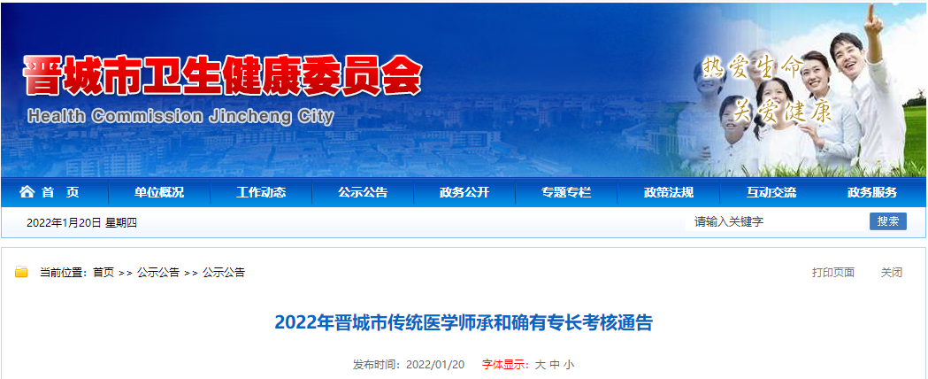 2022年晉城市傳統(tǒng)醫(yī)學(xué)師承和確有專長考核通告