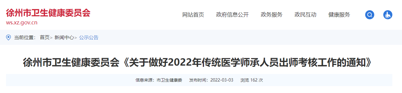 徐州市衛(wèi)生健康委員會《關(guān)于做好2022年傳統(tǒng)醫(yī)學(xué)師承人員出師考核工作的通知》
