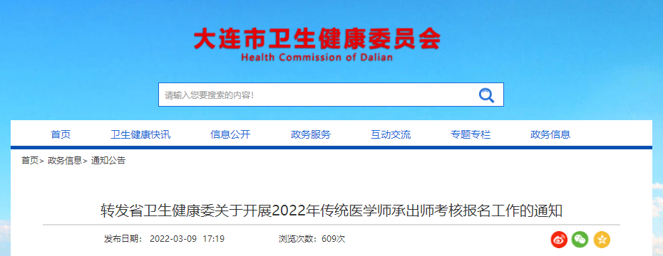 轉(zhuǎn)發(fā)省衛(wèi)生健康委關(guān)于開(kāi)展2022年傳統(tǒng)醫(yī)學(xué)師承出師考核報(bào)名工作的通知