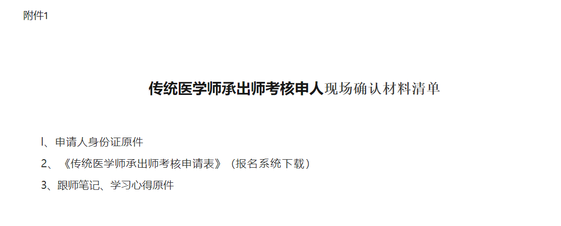1.傳統(tǒng)醫(yī)學(xué)師承出師考核申請(qǐng)人現(xiàn)場(chǎng)確認(rèn)材料清單