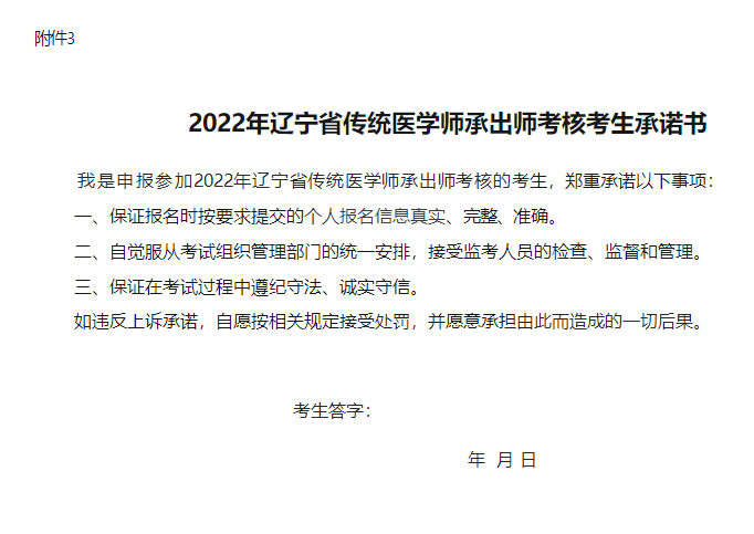3.2022年傳統(tǒng)醫(yī)學(xué)師承出師考核考生承諾書