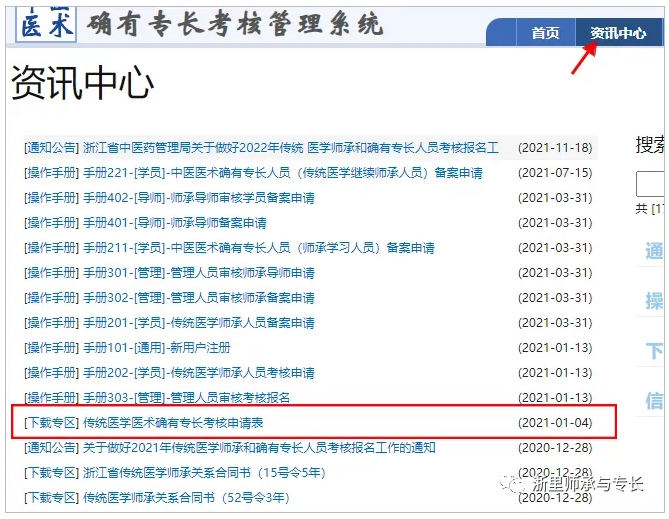 提示:《傳統(tǒng)醫(yī)學(xué)醫(yī)術(shù)確有專長(zhǎng)考核申請(qǐng)表》可在【系統(tǒng)】的資訊中心欄目下載。