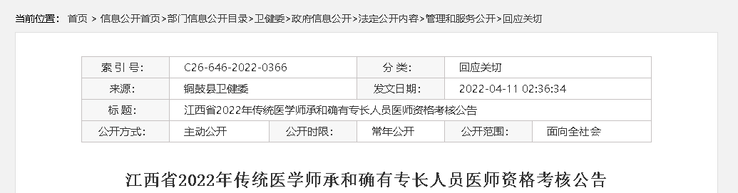 江西省2022年傳統(tǒng)醫(yī)學(xué)師承和確有專長人員醫(yī)師資格考核公告