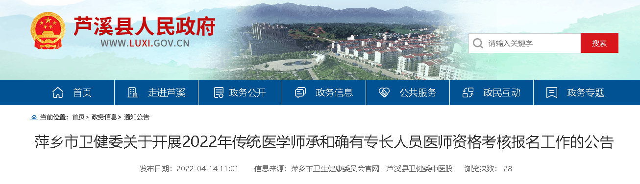 萍鄉(xiāng)市衛(wèi)健委關(guān)于開(kāi)展2022年傳統(tǒng)醫(yī)學(xué)師承和確有專長(zhǎng)人員醫(yī)師資格考核報(bào)名工作的公告
