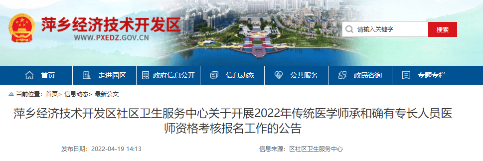 萍鄉(xiāng)經(jīng)濟技術(shù)開發(fā)區(qū)社區(qū)衛(wèi)生服務(wù)中心關(guān)于開展2022年傳統(tǒng)醫(yī)學師承和確有專長人員醫(yī)師資格考核報名工作的公告