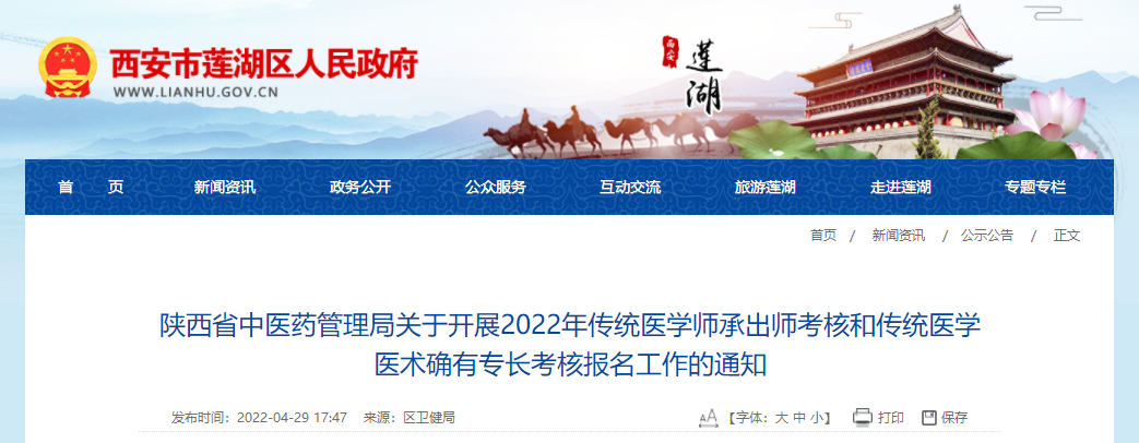 陜西省西安市蓮湖區(qū)發(fā)布2022年傳統(tǒng)醫(yī)學(xué)師承出師考核和傳統(tǒng)醫(yī)學(xué)醫(yī)術(shù)確有專長考核報名工作的通知,為幫助參加2022年傳統(tǒng)醫(yī)學(xué)師承與確有專長考核的考生了解,在此醫(yī)學(xué)教育網(wǎng)小編為大家整理如下內(nèi)容: