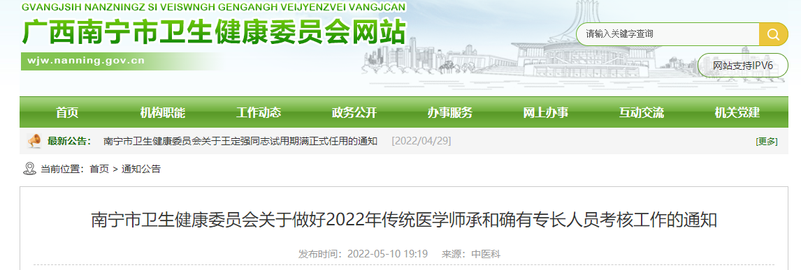 南寧市衛(wèi)生健康委員會關(guān)于做好2022年傳統(tǒng)醫(yī)學(xué)師承和確有專長人員考核工作的通知