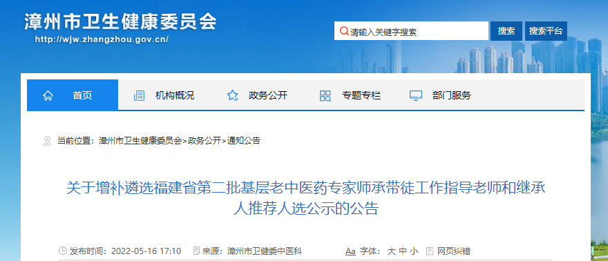 關于增補遴選福建省第二批基層老中醫(yī)藥專家?guī)煶袔焦ぷ髦笇Ю蠋熀屠^承人推薦人選公示的公告