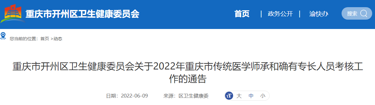 關(guān)于開展2022年重慶市傳統(tǒng)醫(yī)學(xué)師承和確有專長人員考核工作的通知