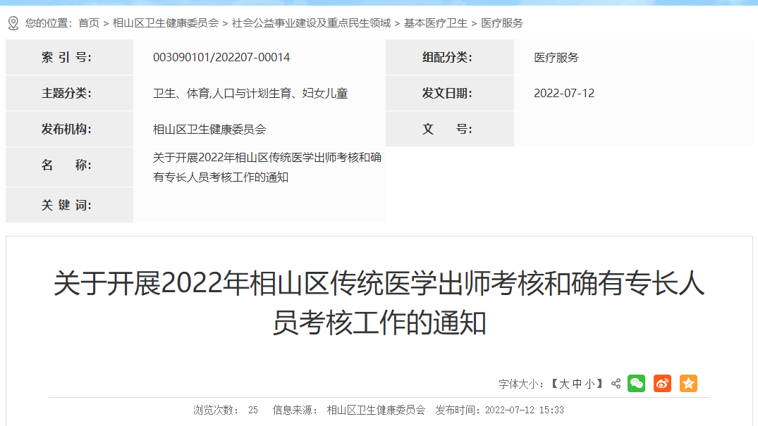 關(guān)于開(kāi)展2022年相山區(qū)傳統(tǒng)醫(yī)學(xué)出師考核和確有專長(zhǎng)人員考核工作的通知