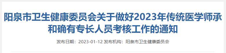 陽泉市衛(wèi)生健康委員會關(guān)于做好2023年傳統(tǒng)醫(yī)學(xué)師承和確有專長人員考核工作的通知