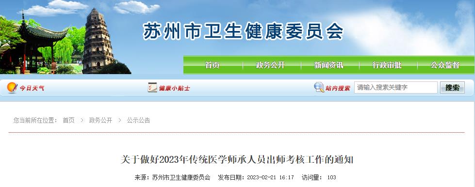 關(guān)于“江蘇省蘇州市關(guān)于做好2023年傳統(tǒng)醫(yī)學(xué)師承人員出師考核工作的通知”相關(guān)內(nèi)容,相信參加2023年傳統(tǒng)醫(yī)學(xué)師承考核的考生都在關(guān)注,為方便大家了解,在此醫(yī)學(xué)教育網(wǎng)小編為大家整理如下內(nèi)容: