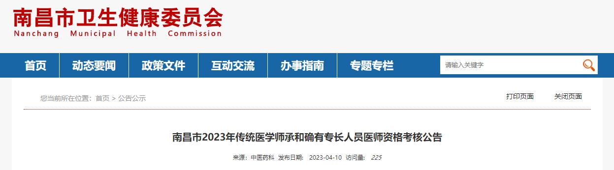 南昌市2023年傳統(tǒng)醫(yī)學師承和確有專長人員醫(yī)師資格考核公告