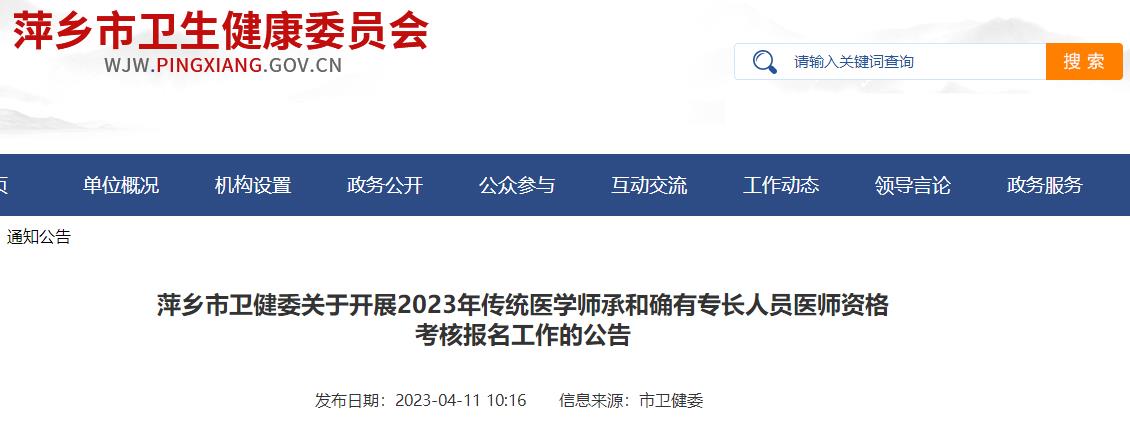 江西省萍鄉(xiāng)市衛(wèi)健委關(guān)于開(kāi)展2023年傳統(tǒng)醫(yī)學(xué)師承和確有專長(zhǎng)人員醫(yī)師資格考核報(bào)名工作的公告