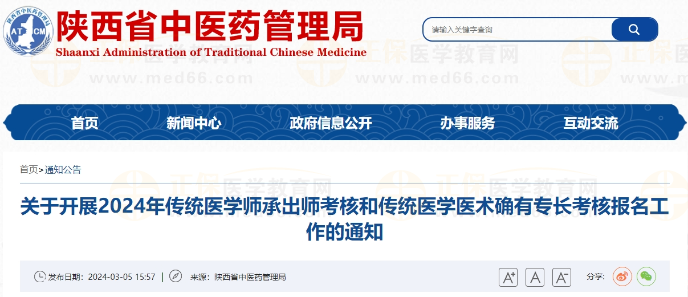 陜西省關(guān)于開展2024年傳統(tǒng)醫(yī)學(xué)師承出師考核和傳統(tǒng)醫(yī)學(xué)醫(yī)術(shù)確有專長考核報名工作的通知已發(fā)布,申請參加考核人員,通過“陜西省中醫(yī)藥發(fā)展服務(wù)中心”網(wǎng)站“傳統(tǒng)醫(yī)學(xué)師承和確有專長醫(yī)師資格考核報名系統(tǒng)”進(jìn)行網(wǎng)上報名,醫(yī)學(xué)教育網(wǎng)小編為大家整理通知如下: