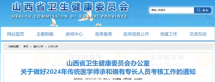 附件:2024年山西省傳統(tǒng)醫(yī)學(xué)師承出師考核通告