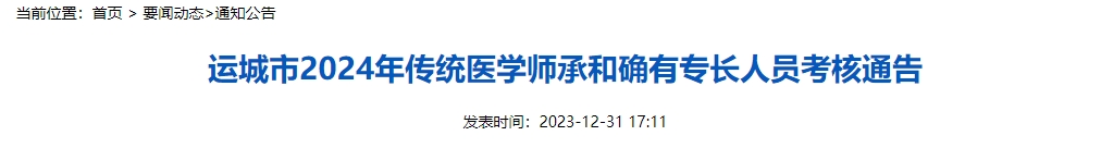 運(yùn)城市2024年傳統(tǒng)醫(yī)學(xué)師承和確有專長人員考核通告
