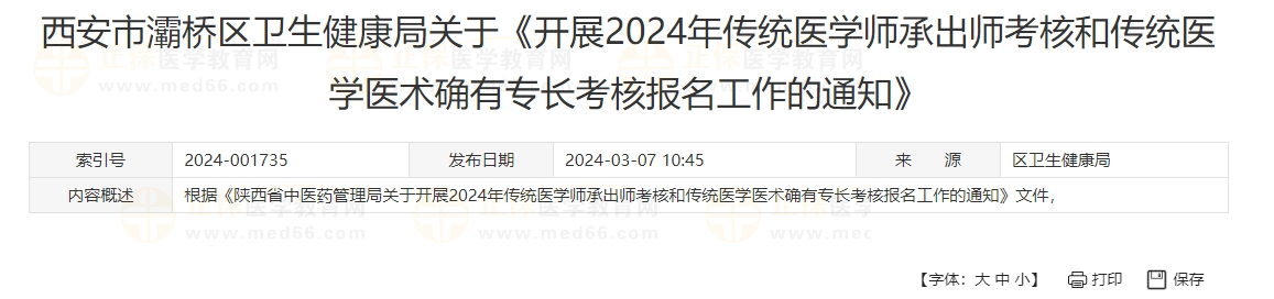 西安市灞橋區(qū)衛(wèi)生健康局關(guān)于《開展2024年傳統(tǒng)醫(yī)學(xué)師承出師考核和傳統(tǒng)醫(yī)學(xué)醫(yī)術(shù)確有專長考核報(bào)名工作的通知》