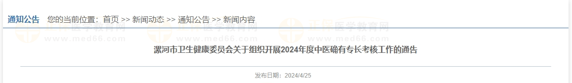 河南省漯河市衛(wèi)生健康委員會關(guān)于組織開展2024年度中醫(yī)確有專長考核工作的通告已發(fā)布,報名時間:6月25日到7月25日。醫(yī)學(xué)教育網(wǎng)小編為大家整理官方通知如下: