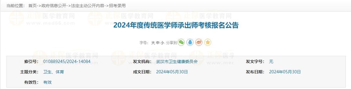 湖北省武漢市2024年度傳統(tǒng)醫(yī)學(xué)師承出師考核報(bào)名公告已發(fā)布,參加報(bào)名的考生請于2024年6月1日起登錄湖北衛(wèi)生人才網(wǎng)進(jìn)行報(bào)名,醫(yī)學(xué)教育網(wǎng)小編為大家整理官方通知如下: