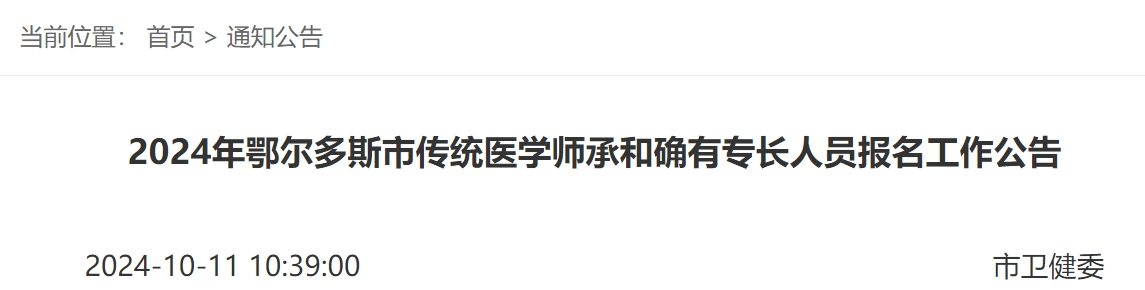 2024年內(nèi)蒙古鄂爾多斯市傳統(tǒng)醫(yī)學(xué)師承和確有專長人員報(bào)名工作公告已發(fā)布,醫(yī)學(xué)教育網(wǎng)小編為大家整理通知如下: