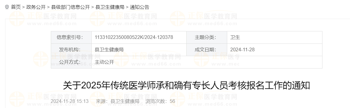 關(guān)于2025年傳統(tǒng)醫(yī)學師承和確有專長人員考核報名工作的通知