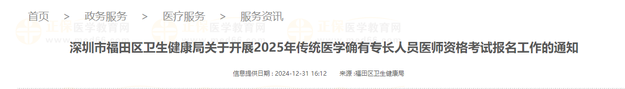 深圳市福田區(qū)衛(wèi)生健康局關(guān)于開(kāi)展2025年傳統(tǒng)醫(yī)學(xué)確有專(zhuān)長(zhǎng)人員醫(yī)師資格考試報(bào)名工作的通知