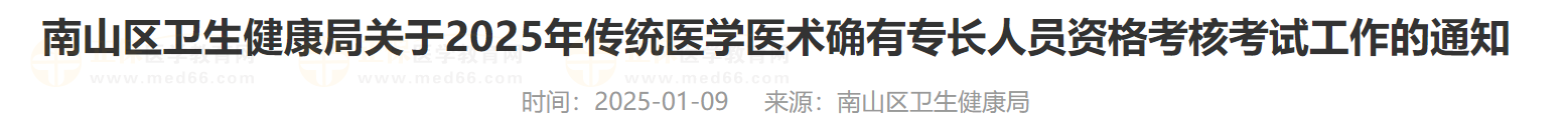 南山區(qū)衛(wèi)生健康局關(guān)于2025年傳統(tǒng)醫(yī)學(xué)醫(yī)術(shù)確有專長(zhǎng)人員資格考核考試工作的通知