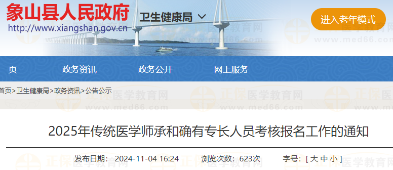 浙江省寧波市象山縣2025年傳統(tǒng)醫(yī)學(xué)師承和確有專長(zhǎng)人員考核報(bào)名工作的通知已發(fā)布,網(wǎng)上報(bào)名時(shí)間為2024年12月2日9:00至12月20日17:00,現(xiàn)場(chǎng)確認(rèn)時(shí)間為2024年12月2日—20日(工作日),醫(yī)學(xué)教育網(wǎng)小編整理官方通知如下: