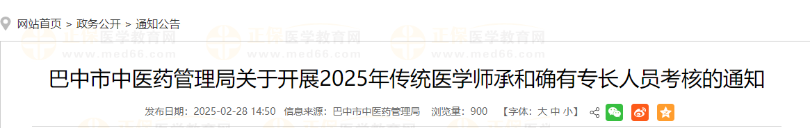 四川巴中市2025年傳統(tǒng)醫(yī)學師承和確有專長人員考核的通知已發(fā)布,醫(yī)學教育網(wǎng)小編整理官方通知如下: