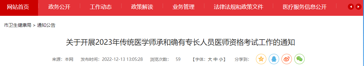 關(guān)于開(kāi)展2023年傳統(tǒng)醫(yī)學(xué)師承和確有專(zhuān)長(zhǎng)人員醫(yī)師資格考試工作的通知