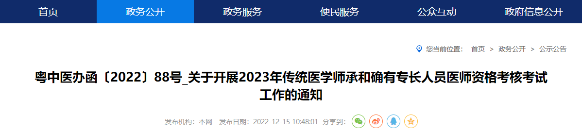 粵中醫(yī)辦函〔2022〕88號(hào)_關(guān)于開(kāi)展2023年傳統(tǒng)醫(yī)學(xué)師承和確有專長(zhǎng)人員醫(yī)師資格考核考試工作的通知