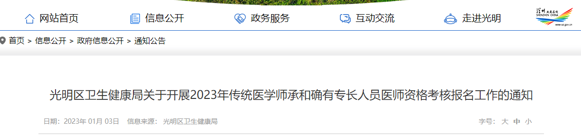 深圳市光明區(qū)衛(wèi)生健康局關于開展2023年傳統(tǒng)醫(yī)學師承和確有專長人員醫(yī)師資格考核報名工作的通知,醫(yī)學教育網(wǎng)編輯為您搜集整理如下,希望可以幫助到您的報考: