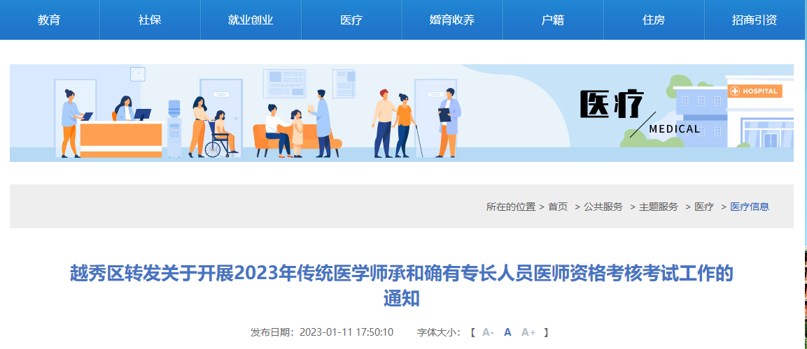 越秀區(qū)衛(wèi)生健康局發(fā)布“越秀區(qū)轉(zhuǎn)發(fā)關(guān)于開展2023年傳統(tǒng)醫(yī)學(xué)師承和確有專長人員醫(yī)師資格考核考試工作的通知”,醫(yī)學(xué)教育網(wǎng)編輯為您搜集整理如下,希望可以幫助到您的報(bào)考: