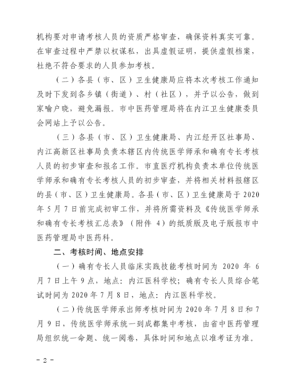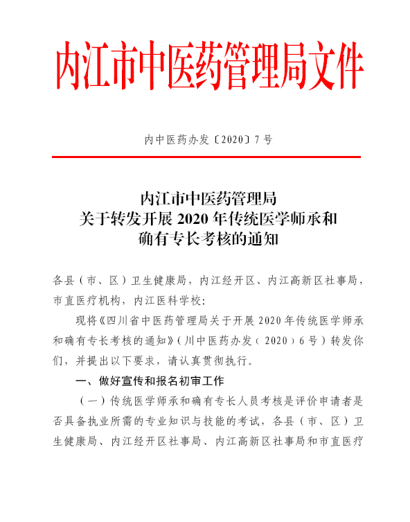 四川內(nèi)江市2020年傳統(tǒng)醫(yī)學(xué)師承和確有專長考核的通知: