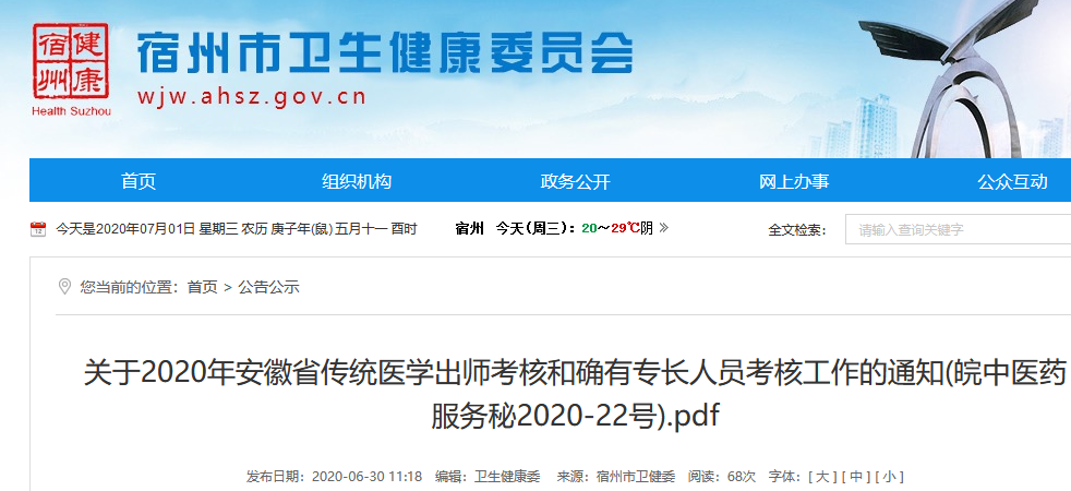 宿州市關(guān)于2020傳統(tǒng)醫(yī)學(xué)出師考核和確有專長人員考核工作的通知已發(fā)布,宿州市轉(zhuǎn)發(fā)關(guān)于2020安徽省傳統(tǒng)醫(yī)學(xué)出師考核和確有專長人員考核工作的通知,醫(yī)學(xué)教育網(wǎng)編輯為您整理相關(guān)內(nèi)容如下: