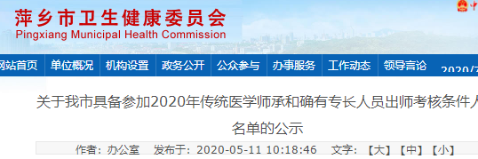 萍鄉(xiāng)市哪些人通過(guò)2020年傳統(tǒng)醫(yī)學(xué)師承和確有專長(zhǎng)報(bào)名審核?關(guān)于萍鄉(xiāng)市具備參加2020年傳統(tǒng)醫(yī)學(xué)師承和確有專長(zhǎng)人員出師考核條件人員名單的公示通知已發(fā)布,醫(yī)學(xué)教育網(wǎng)編輯為您整理關(guān)于萍鄉(xiāng)市具備參加2020年傳統(tǒng)醫(yī)學(xué)師承和確有專長(zhǎng)人員出師考核條件人員名單信息內(nèi)容如下: