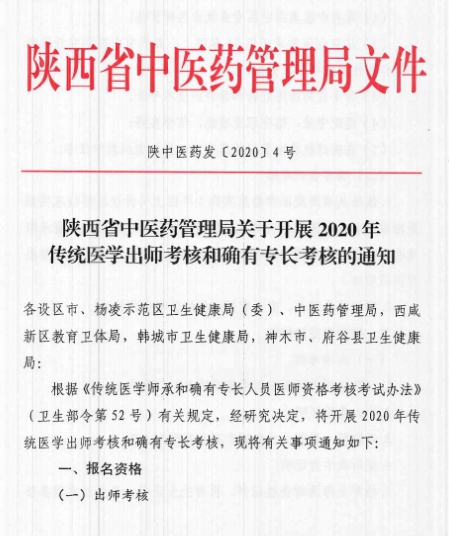陜西省各市區(qū)2020年傳統(tǒng)師承和確有專長考試報名通知文件匯總